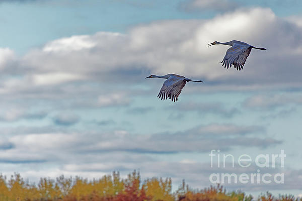 Sandhill crane fly over Crex Meadows calling out for others. These calls echo all over the refuge in autumn.